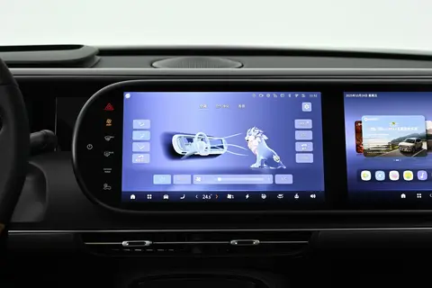 中控设计:延续了外观的 Boxy 风格,平直线条让中控台看起来简洁大方。悬浮式双 13 英寸 AMOLED 联屏特别吸睛,用的是和新款 iPad Pro 一样的 Tandem 双层 OLED 技术,显示清晰、色彩鲜艳,就算在太阳底下也能看清楚,操作起来也很流畅,没有卡顿感。