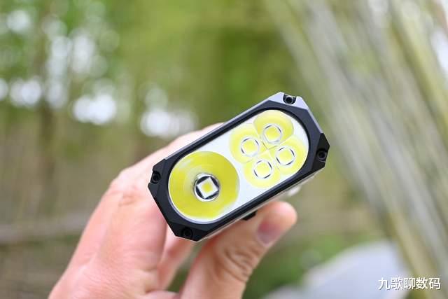 手电灯珠部分的改动很大,针对日常使用场景做了远、泛划分。其中泛光由4颗XHP50HD LED灯珠组成,亮度最高为9500流明;聚光则为单颗XHP50 HI LED,3500流明(MAX)。远、泛即可单独开启,也能同时点亮。