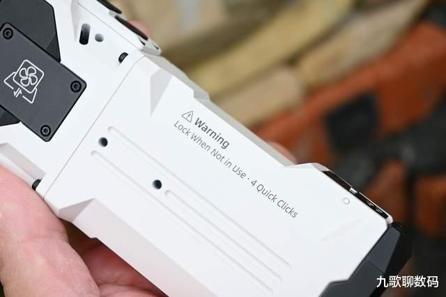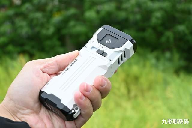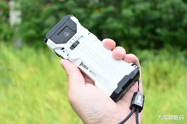 这样的成绩对于一款尺寸紧凑的便携手电而言还是很难得的。我们从一侧可以看到它的风口。风扇做了易拆设计,相较于之前的X1,更换、清洁都很便捷。