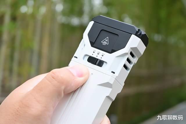 21700双锂供电的紧凑机身在尺寸上恰到好处,它的具体“三围”为138*59.6*29.5mm,很适合单手握持。加上电池后的重量达到了383克,握在手中还是足够有份量感的。