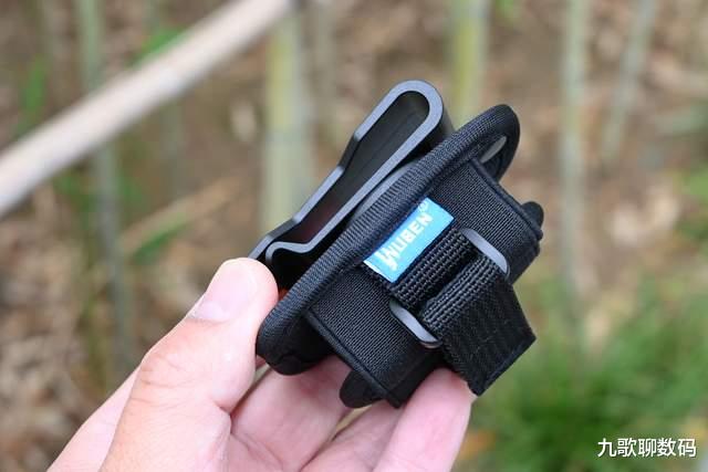 另个则是快拔收纳套。并非是常见套筒,而是弹力绑带+魔术贴,手电插入后束紧还是很稳牢的。