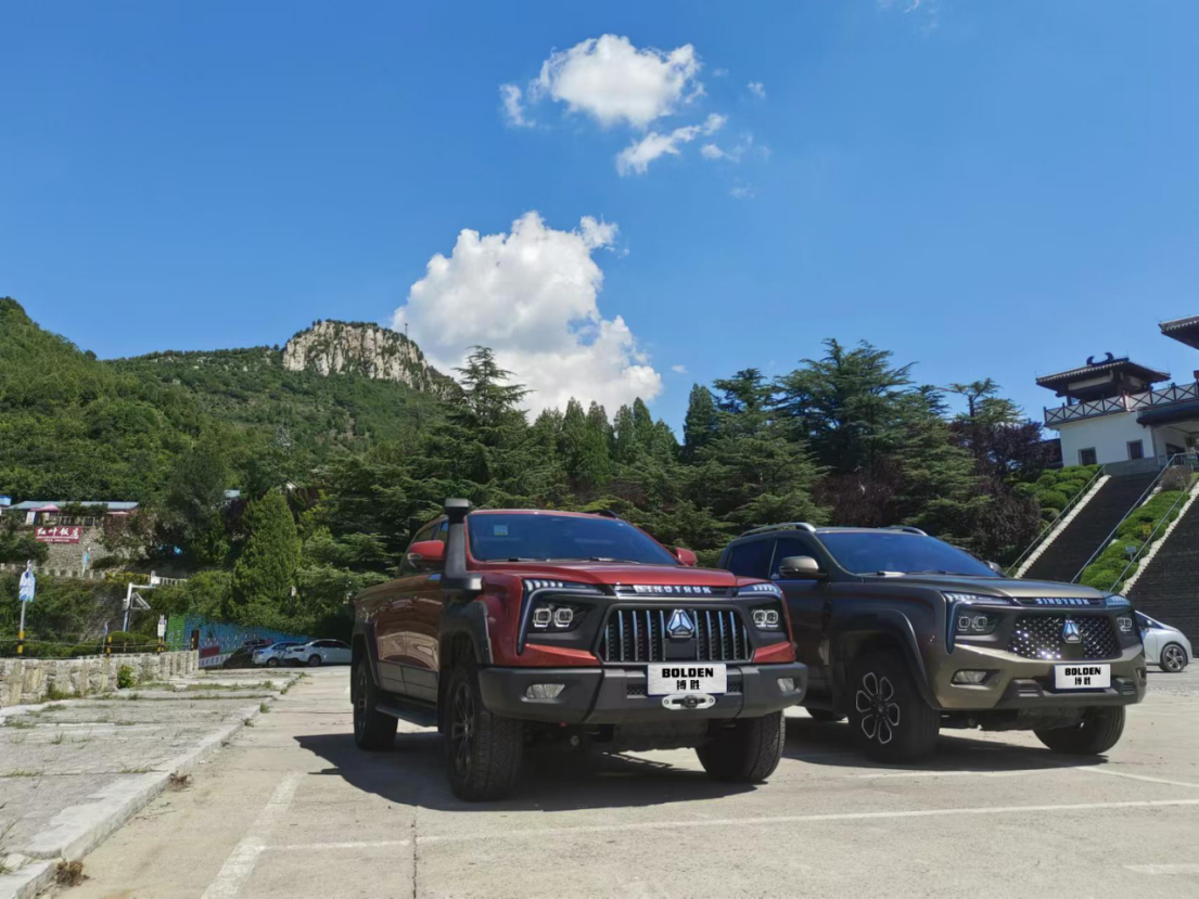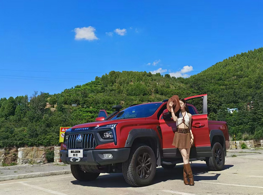 红叶谷隐藏在山林深处,到达此地需要经过蜿蜒盘旋且布满陡坡的山间公路,搏胜皮卡搭载的潍柴WP2H2.0T柴油发动机,最大扭矩高达420N·m,翻山越岭自然不在话下,而稳定的底盘和轻盈的转向也让九曲十八弯的山路不是前行的难题。蓝天白云之下,绿树掩映之间,搏胜皮卡硬朗挺拔、张力涌动的造型更加吸睛。