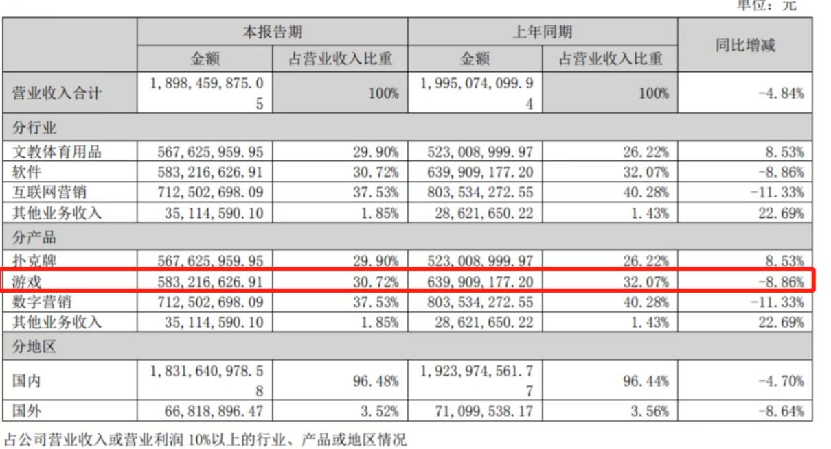 姚记扑克也出现首次业绩下滑,全年营收同比下滑7.06%。也是从这年开始,连续三年业绩下滑。