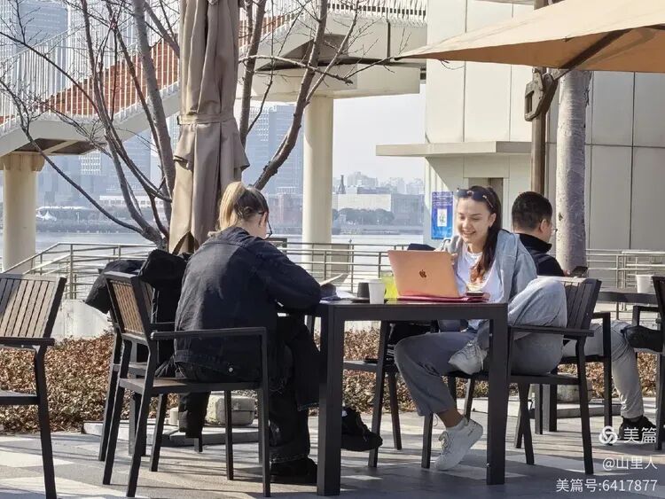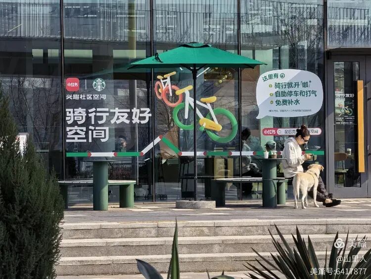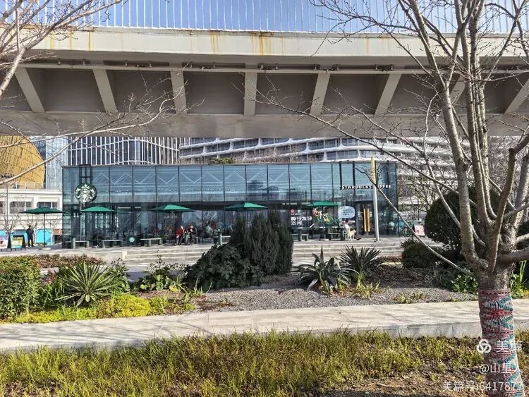 与川杨河店相隔百米的星巴克咖啡店,虽然是同业竞争,但是它们对滨江步道沿线的便民生态环境改善,确实起到作用。