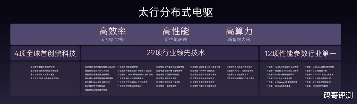 太行分布式电驱集4项全球首创黑科技,12项行业第一参数,29项行业领先的技术于一身,拥有高效率、高性能、高算力三大核心优势。电驱系统工况效率超92.8%,全球第一,功率大幅提升的同时续航几乎零折损;体积功率密度行业第一,以更小体积释放更强马力,新阿维塔12三电机四驱版0-100km/h加速仅2.71秒,媲美500万级超跑;算力方面搭载全球最高六核电机控制器芯片,每秒处理40亿条指令,带来闪电般的扭矩响应和精细入微的控制,通过对左右两个电机进行超精密的独立控制,提供超过传统机械四驱100倍的扭矩响应速度。此外,新阿维塔12还搭载了法拉利同款电磁避震,支持全段阻尼无级调整,每秒千次的调整能力,紧急场景下快速抑制车身侧倾与俯仰,完美平衡日常舒适性与运动操控性。