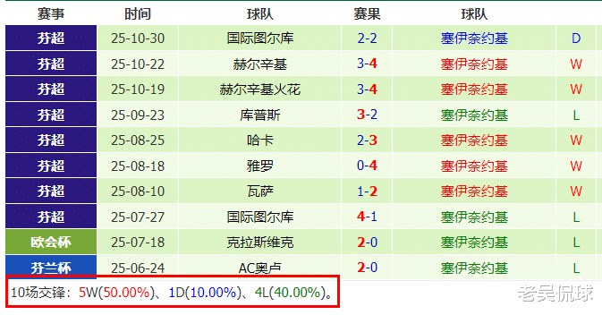 塞伊奈约基客场攻守平衡,近2场不胜终结4连胜赢指数,10场赢8个指数,客场7场5胜赢6个指数,终结8场1胜输6个指数,主客场胜率一致,客场排名更高。