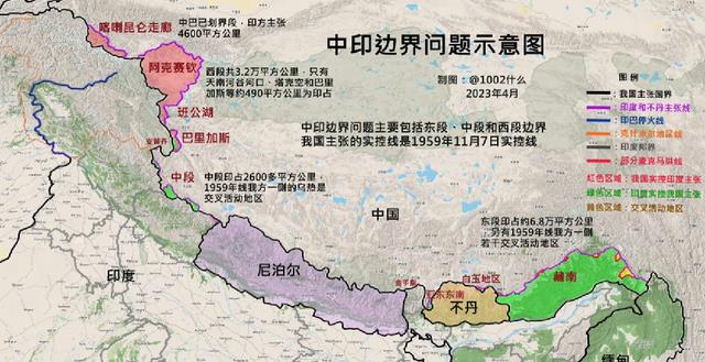 众所周知,中印边境问题主要集中在两段,分别是东段的麦克马洪线和藏南地区,以及中西段的阿克赛钦地区。
