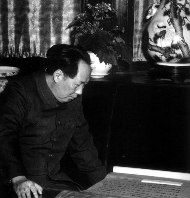 写毕,毛泽东把笔往水池里洗净,插进碗口粗的竹蔸笔筒,躺在沙发里,吸着烟,然后对岸青夫妻说: