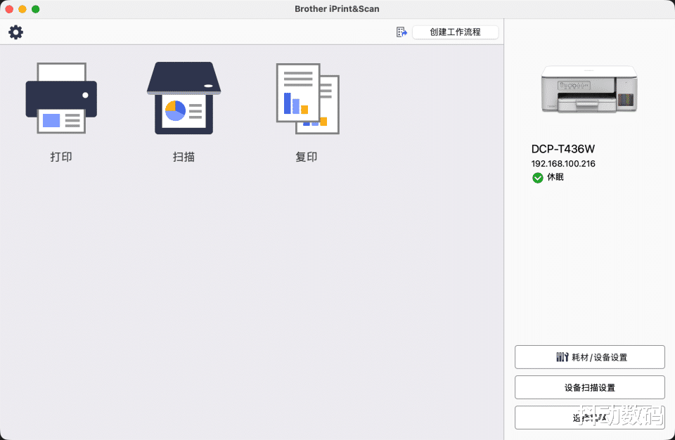 然后,在电脑端,我自己是Mac用户。之前家里的老打印机真的有点折腾,在Mac上的适配很不好,装驱动问题,让我折腾了很久(M4芯片更新的时候)。现在换了这台兄弟打印机,只需要下载一个程序后就可以直接用了,太方便了。而且除了支持传统的USB数据线连接之外,也可以直接通过Wi-Fi无线连接。省去了打印机需要转接连接电脑的麻烦。