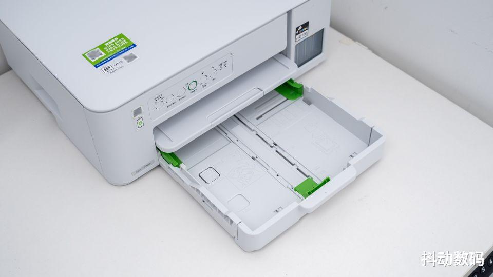底部封闭纸盒设计具备显著优势,其可有效避免纸张积灰与受潮问题。该纸盒最大容量达150张A4纸,日常使用中无需频繁补充打印纸。另外封闭式纸盒也支持多种尺寸纸张的使用,内部卡扣设计,可以方便照片打印。