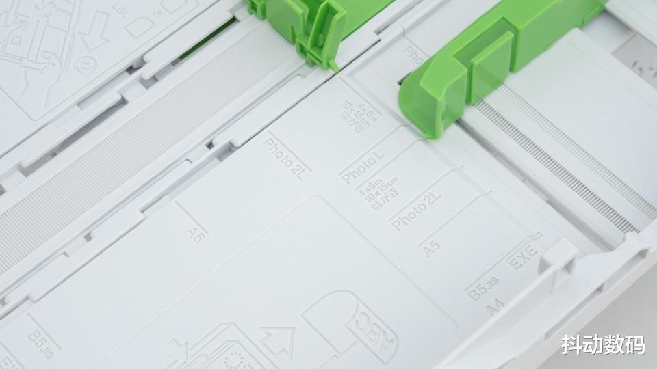 除了支持常见的A4尺寸纸张之外,也支持A5、A6、B5等常见尺寸。另外还支持5英寸、6英寸以及7英寸相纸,对应不同尺寸耗材,都有刻度标识方便使用。