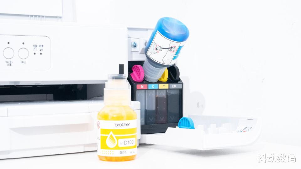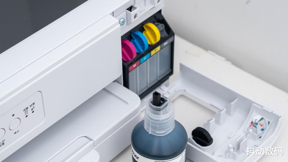 兄弟墨仓式打印机采用了可视化墨水仓设计,打开面板就可以自行添加墨水了。
