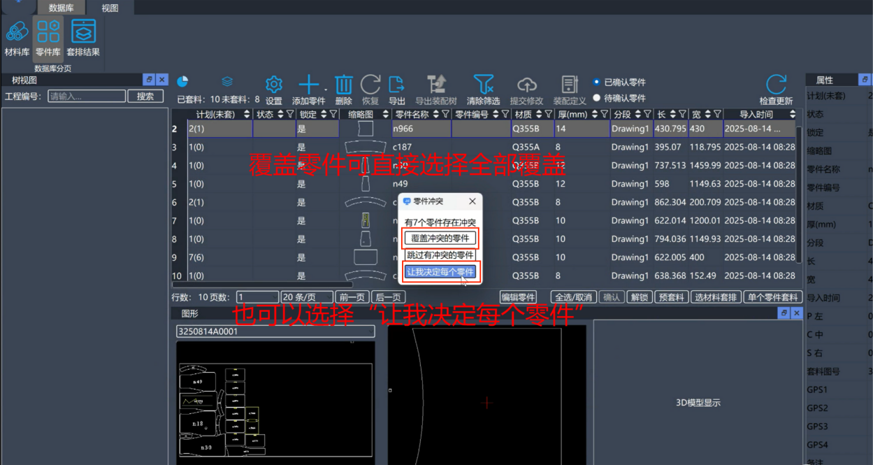 设计人员在变更零件后,将该零件重新导入SinoManager零件库,软件将自动抓取替换原有的零件,无论变更几次或几个零件,零件库都会自动同步更新套料图,减去二次套料排版的麻烦,杜绝人工误判的情况,让流程自动化,提高套料排版人员的工作效率和质量。