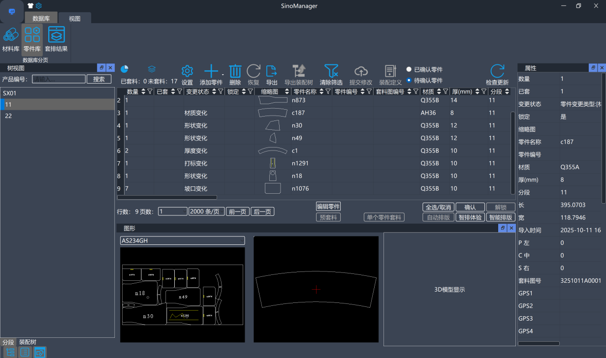 SinoManager零件库可以帮助船舶设计人员、套料排版人员、车间生产人员,快速定位需要变更的零件。无论是已经在排版图里的还是尚未排版的零件,第一时间定位到该零件,避免后续被不当使用造成返工或生产损失。