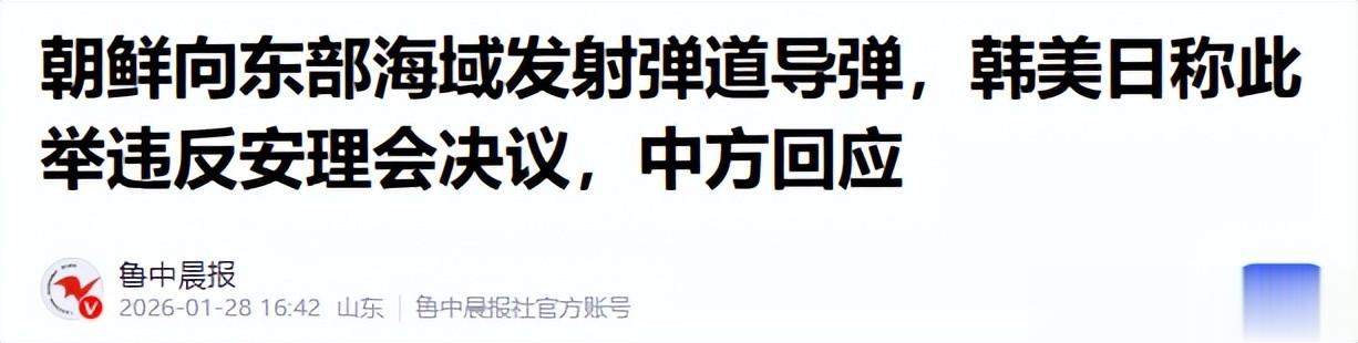 鲁中晨报——朝鲜向东部海域发射弹道导弹,韩美日称此举违反安理会决议,中方回应 2026-01-28