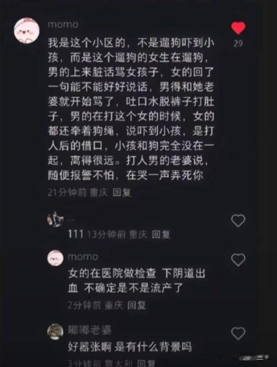 并且这位网友还透露,被打的陈某已经去医院做过检查了,因为小腹被攻击,出现了下阴道出血的情况,目前还不知道是不是流产......