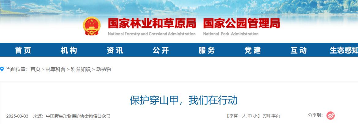 信息来源:国家林业和草原局 保护穿山甲,我们在行动 2025-03-03