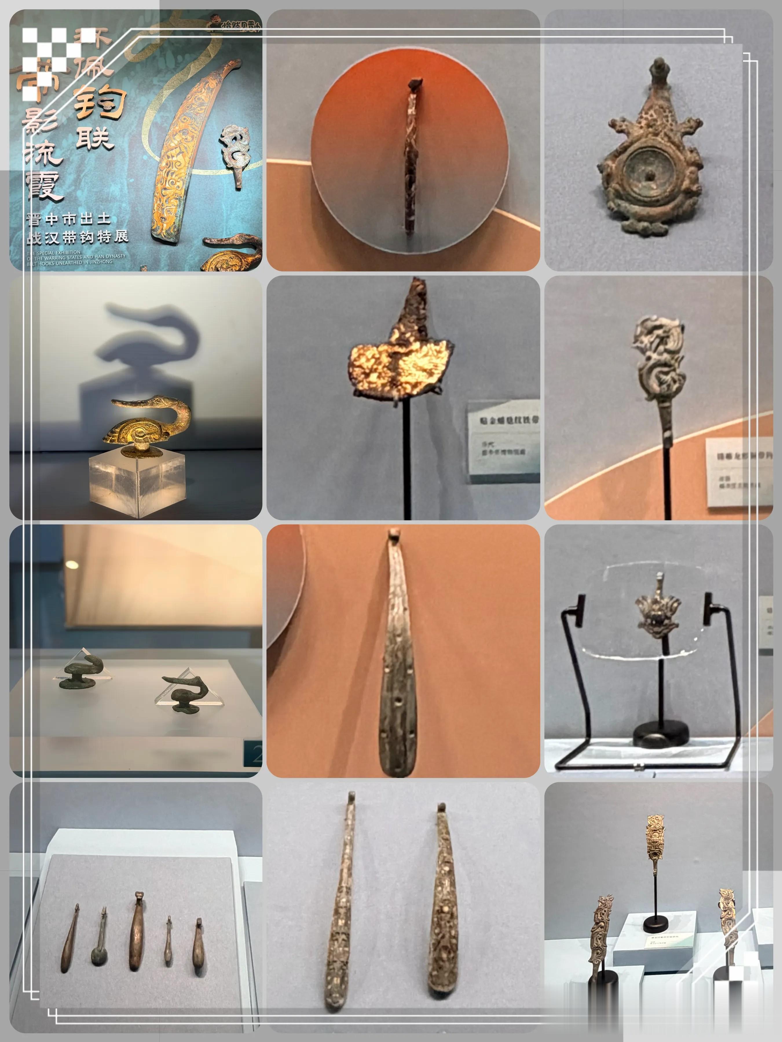 “环佩钩联,带影流霞——晋中市出土战汉带钩特展”,这个特展云集晋中出土的战汉带钩精品。展品以金、玉、青铜为主要材质,造型含瑞兽、禽鸟等纹样,工艺精湛,彰显了战汉时期的文明交融与工艺水准。