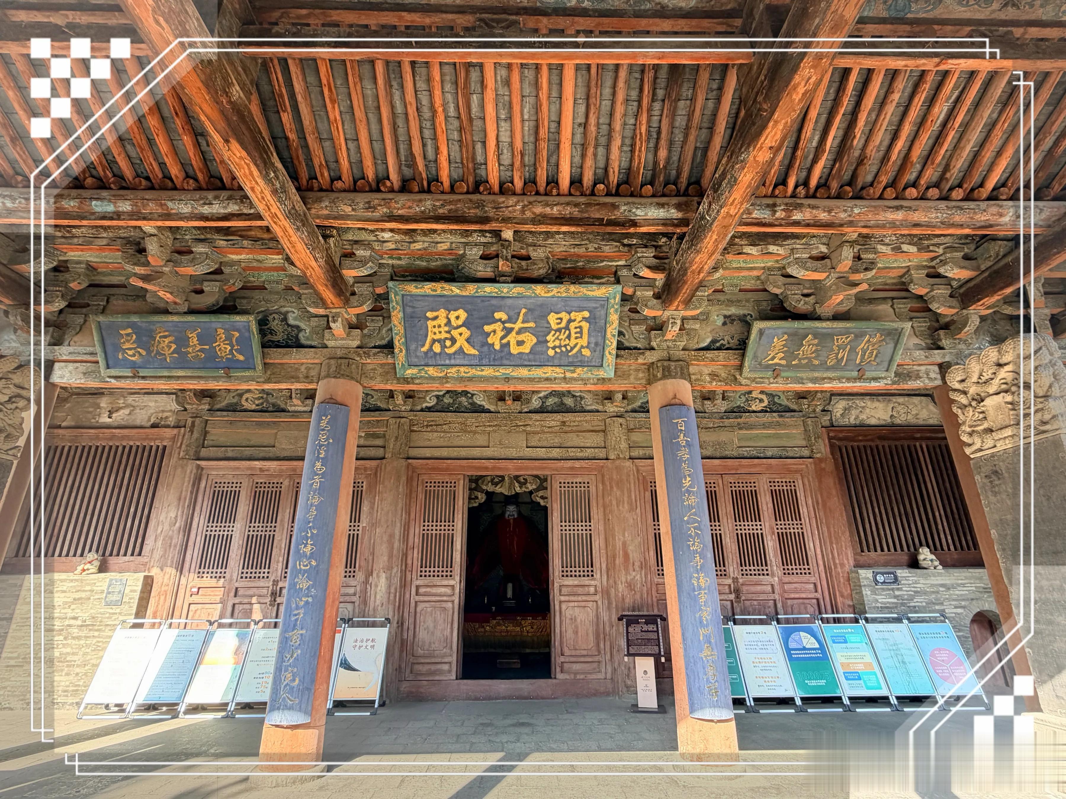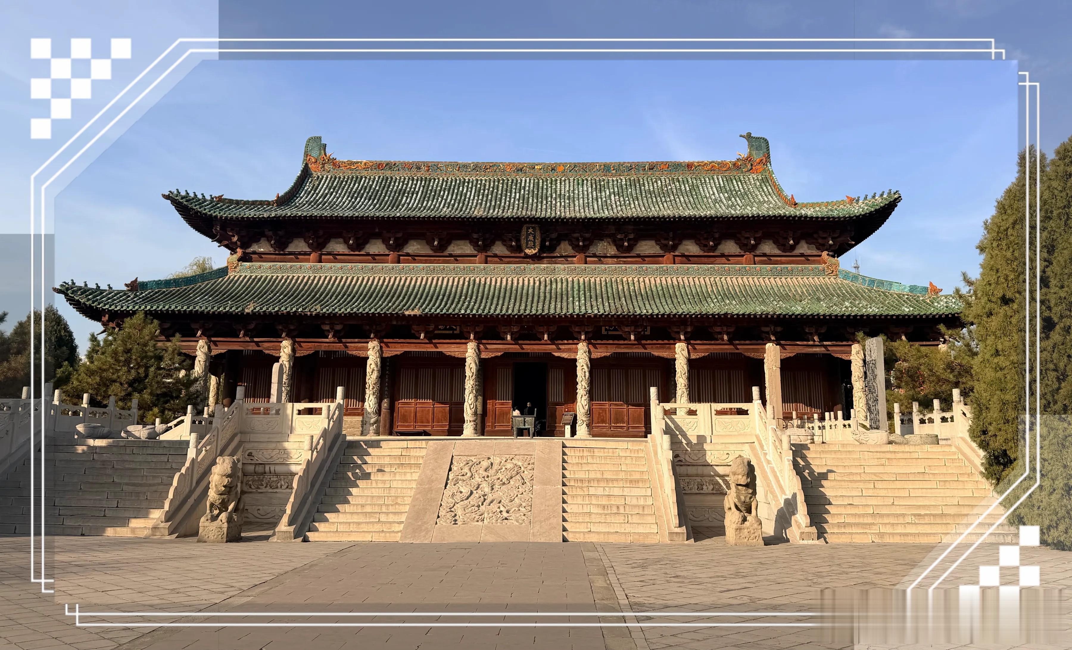 核心建筑正殿,始建元代、明代扩建,单檐歇山顶覆盖黄琉璃瓦,斗拱采用宋代“偷心造”工艺,层层叠加错落有致。