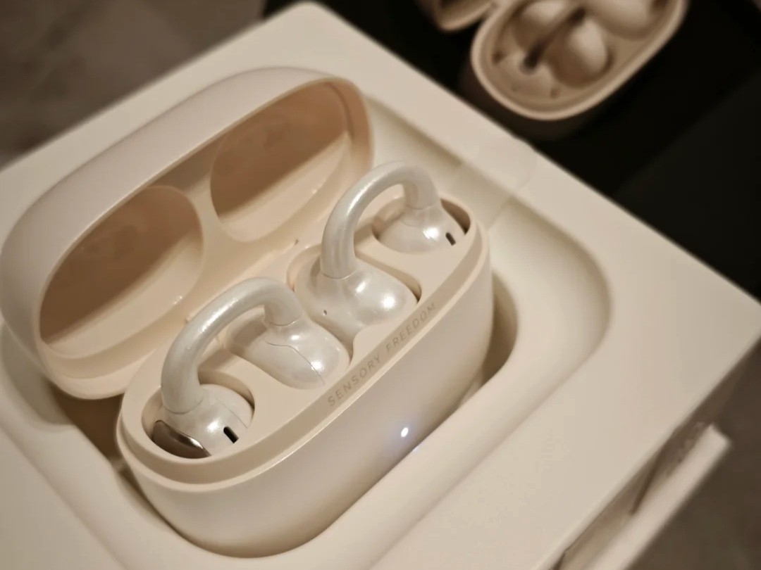 佩戴舒适感:这款耳机的独特 C 形桥设计搭配人因工程学造型,再加上单耳仅 5.6g 的轻量化机身,戴上去能完美贴合耳廓曲线。哪怕连续戴一下午,耳朵也几乎没什么存在感,完全不会有压迫感。