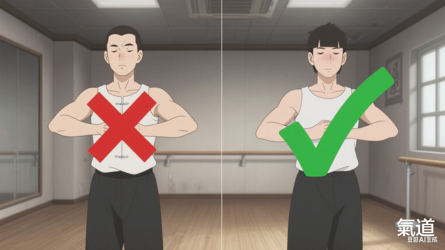 新手最容易踩的坑,就是一门心思找气感!有人憋气,有人使劲绷着身体,结果肌肉僵得不行,气血反而不流通了。正确的做法超简单:站桩的时候就跟平时一样自然呼吸,肩膀往下沉,别刻意挺胸或者使劲收腹。
