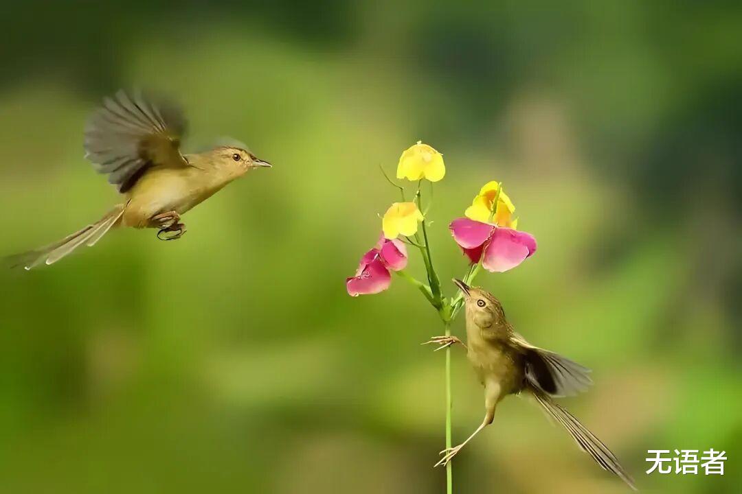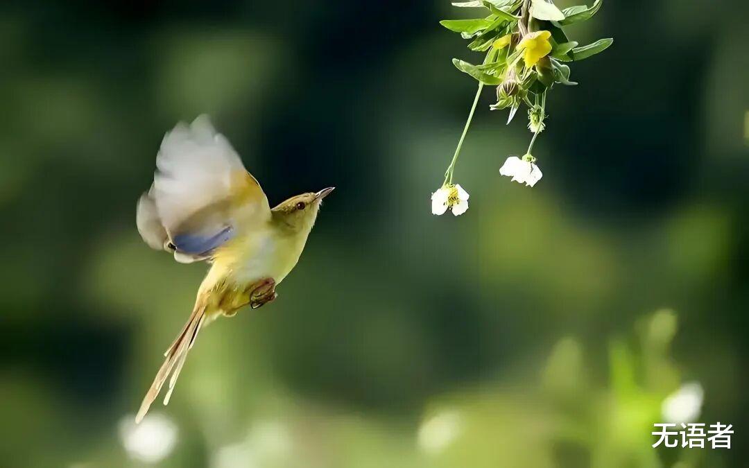 娇艳的花蕊随着黄莺的振翅而翻飞,仿佛被注入生命的活力;浓密的绿阴则像被精心裁剪过,为蝴蝶划分出专属的舞池。