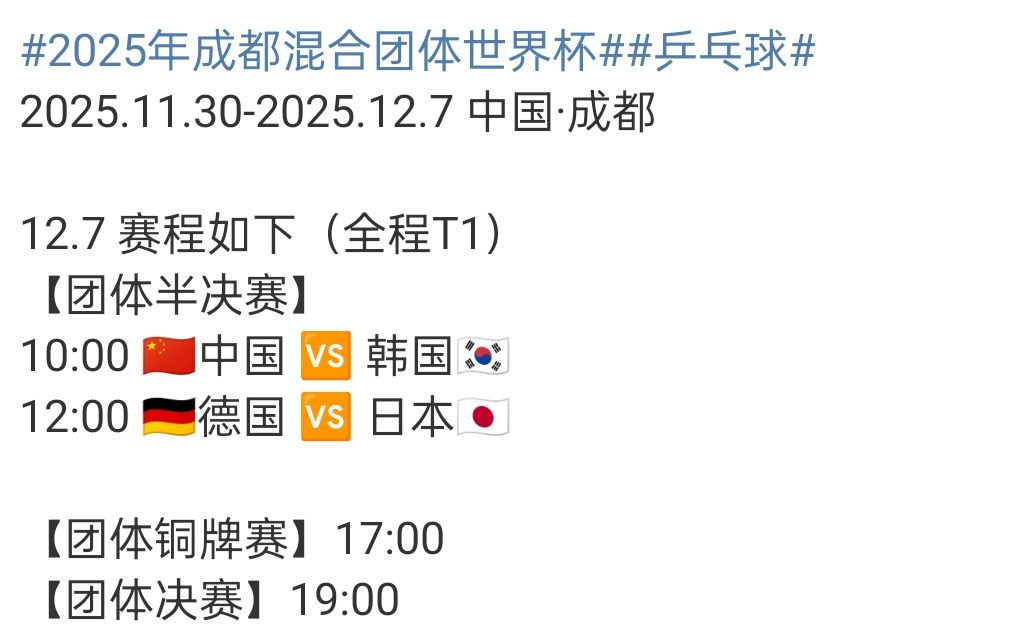 2025年12月7日,乒乓球混团世界杯来到第八个比赛日,当晚将产生冠军,上演收官之战,国乒先是对阵韩国,不出意外的话决赛还会对阵日本,另外还会进行铜牌战,有人无缘站在领奖台。