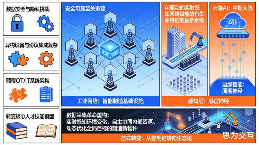 当然,构建并驾驭这样一个实时感知网络并非易事。它面临着数据安全与隐私的严峻挑战、异构设备与协议集成的复杂性、对既有OT/IT系统架构的颠覆,以及核心人才技能模型的彻底转变。工业网络作为智能制造的基础设施,其安全性与可靠性至关重要。