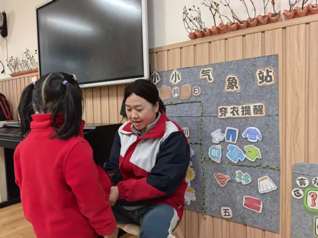 幼儿是流感的易感人群,在日常护理中,老师会根据天气变化及时提醒并帮助宝贝增减衣物,避免宝贝因穿脱不当导致感冒。