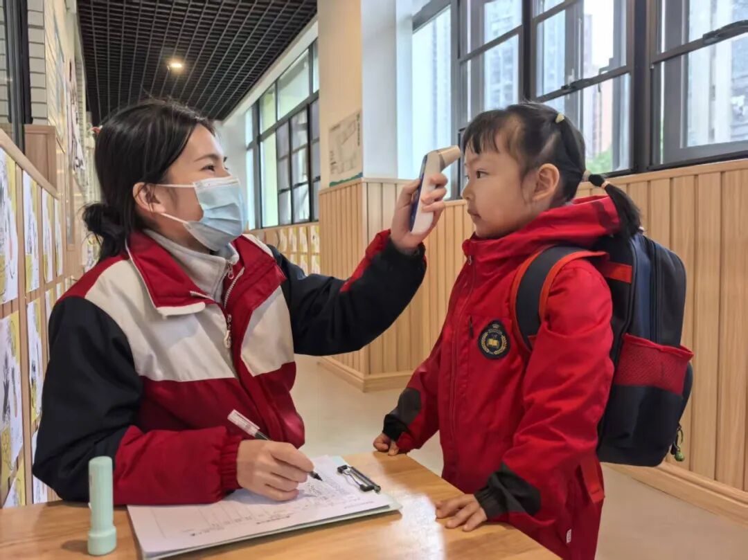 为了及时发现并阻断流感病毒的传播,万婴各园严格执行“双晨检”制度。每天早上入园时,保健医生和班主任会共同为宝贝们进行检查,通过“一看、二摸、三问、四查”的方式,仔细观察宝贝的精神状态、面色,触摸额头感受体温,询问宝贝的身体状况,检查是否有皮疹等异常情况。