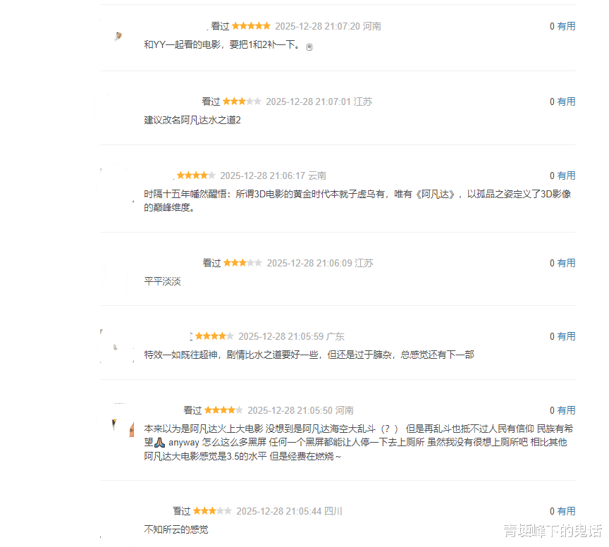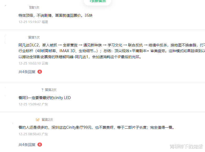 事实上,在豆瓣平台上,《阿凡达3》获得了系列最低的7.6分,许多评论直指“故事平庸”“节奏拖沓”。当技术奇观无法弥补叙事短板,高票价就成了观众放弃影院、等待流媒体的理由。