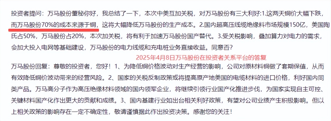 即便说,万马股份把自产的绝缘材料供给自身的电缆产线,争取到了比同行更宽阔的护城河,但其实也只能在剩下30%左右的非铜环节里抠利润,对利润的调控空间依旧比较有限。