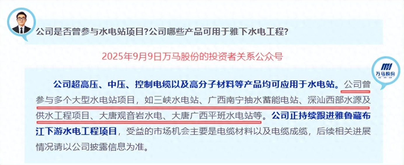 诸如三峡水电站、大唐观音岩水电站和广西南宁抽水蓄能电站等众多大型水电站项目,背后都有万马股份的支撑。