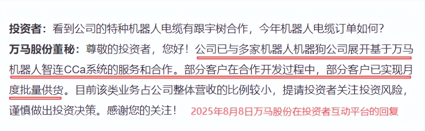 2024年的时候,万马股份更是一跃成为了美的库卡在国内最大的机器人线缆供应商。