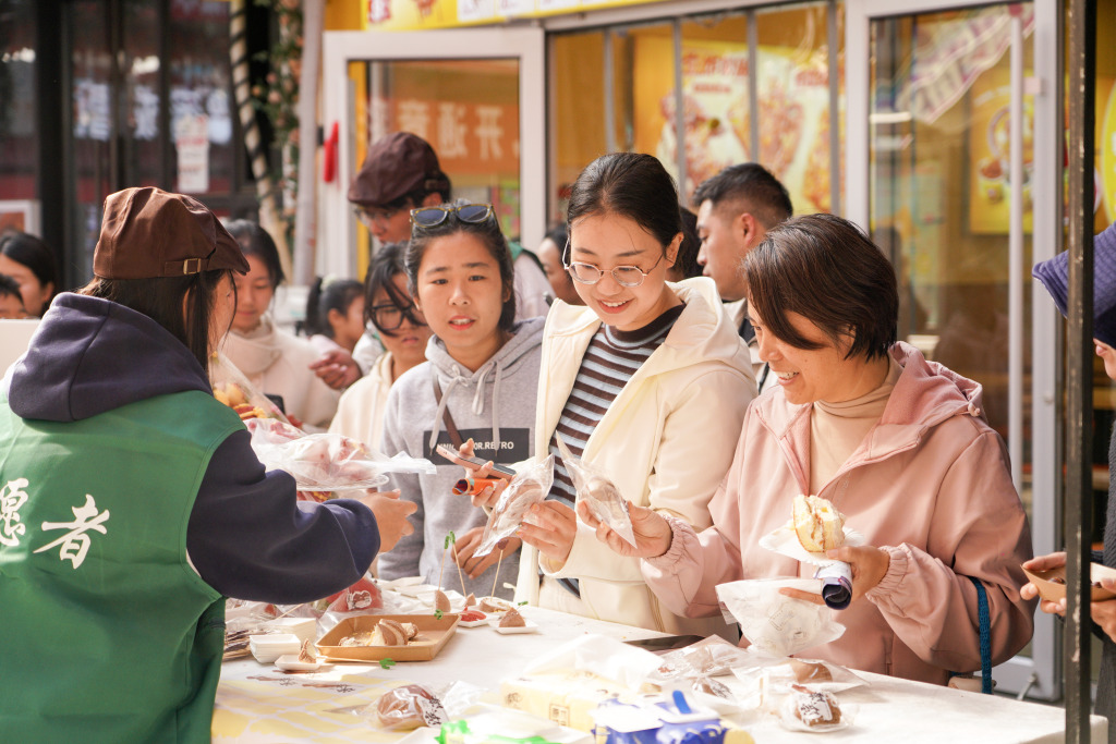活动现场还组织展销滨海特色农产品、海产品及军旅文创产品,精心打造“美食+文旅”多元融合的消费新场景,以浓浓的烟火气凝聚人气,以暖暖的邻里情汇聚民心,为广大市民和附近高校师生带来一场内容丰富、实惠便捷、体验独特的消费盛会。现场展品丰富多样,既有青岛聚大洋藻业集团有限公司、青岛明月海藻集团有限公司、青岛英豪海洋科技集团有限公司的海产品,也有黄岛区滨海街道渔池股份经济合作社制作的海凉粉、海水豆腐,青岛康大现代农业科技发展有限公司、青岛知山高效农业发展有限公司的蓝莓、葡萄等优质农产品亮相展销,还有华巽云科技投资控股(青岛)集团有限责任公司、青岛挚爱深蓝军嫂创业咨询管理有限公司带来的军旅文创工艺品。