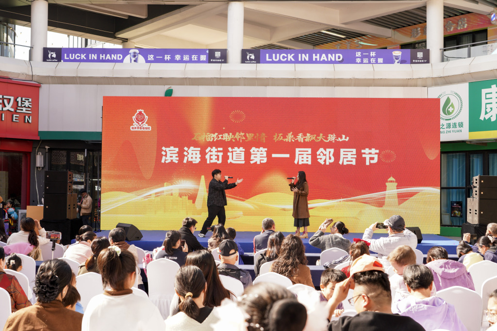 此外,滨海街道以板栗为媒,以节庆为桥,还同步举办“石榴红映邻里情,板栗香飘大珠山”滨海街道第一届邻居节。来自“花开西海岸·青春向未来”2025青岛西海岸新区高校大学生歌手大赛的获奖选手以及青岛西海岸公用事业集团能源供热有限公司的两位歌手现场倾情献唱。滨海街道幼儿园、小学等纷纷踊跃参与邻居节,编排了舞蹈、歌曲、情景剧等17个文艺节目,共同打造了一场烟火气浓、人情味足、文化意蕴丰厚的文化盛宴。