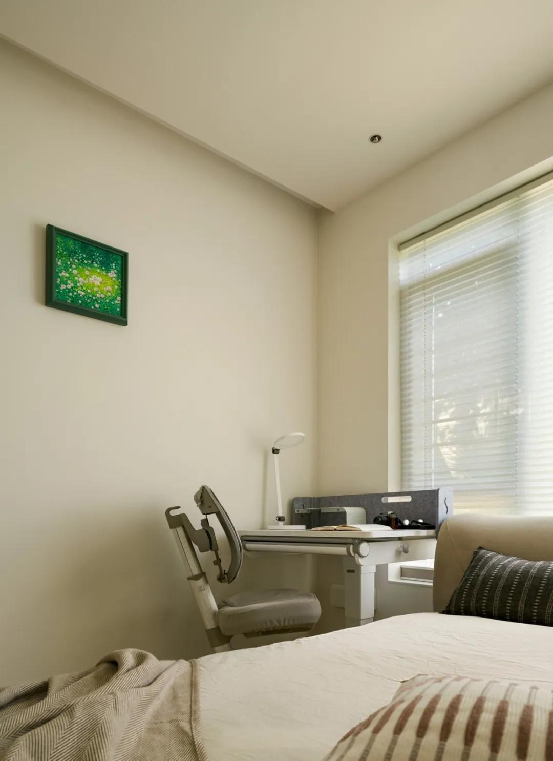 墙上那幅绿意盎然的画,或许是雨林的一角,或许是春日新发的藤蔓,让心得以徜徉。专属空间的百叶帘,是最温柔的日光调节器,它从不粗暴地拒绝阳光,而是将明亮化作朦胧,显化出独特的光影语言。