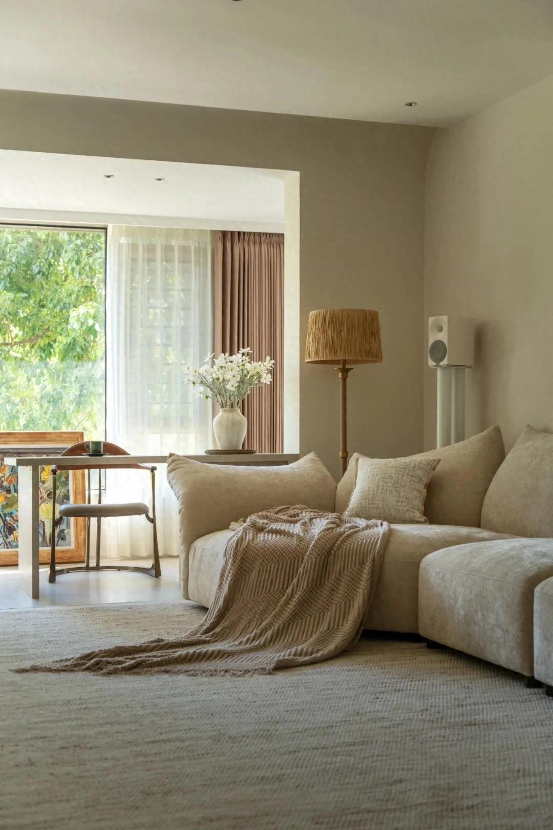 本案位于海南海口佳元·天上人间,是一套150㎡的私宅,设计师深度融合功能、美学与情感,把建筑缺陷转化为艺术亮点,通过引光、借景、互联的手法,为懂得生活的业主营造了一个松弛、温馨且富有精神滋养的居所。