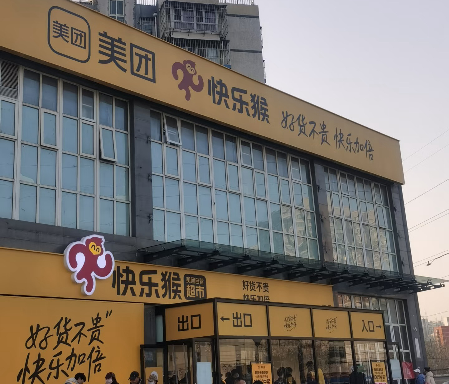 再看美团。在前置仓业务小象超市日益打响品牌的基础上,美团2025年12月另在线下推出了小象超市自营门店。目前该店型数量还在增加中。此外,美团线下硬折扣超市快乐猴自2025年8月首店开业以来,已在多地不断开出新店。最新动态则是,不但线下小象超市可履约美团即时零售订单,快乐猴亦将于4月13日全面接入该赛道。