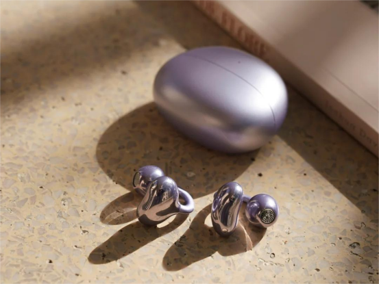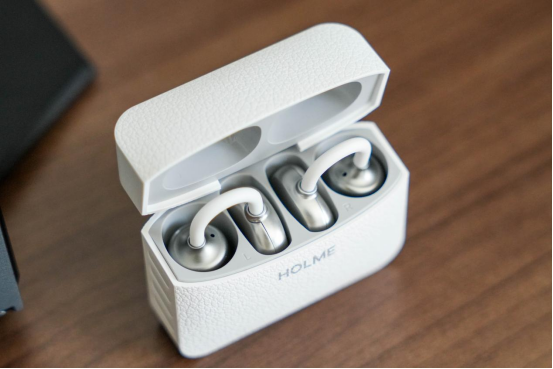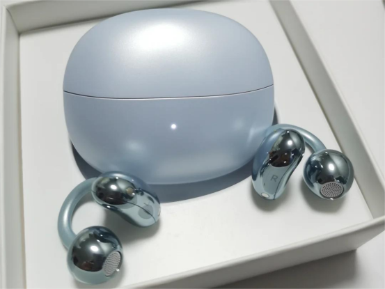 佩戴体验同样十分出色,单耳只有4.5 克的超轻重量,搭配前高后低的2.5 毫米错位设计,耳机戴上后自然形成前高后低的形态,能够更好地夹住耳朵,整体佩戴更加稳固。再加上∠12 度弧面耳托为耳朵提供合理支撑,紧贴耳背、受力均匀,就算佩戴一整天也不会有明显压迫感。