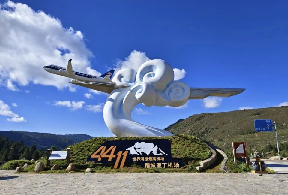 你晓得不,那条跑道有4200米长,在上面都能再摆一条外滩,为什么会这么长?由于空气稀薄得就跟复印纸一样,发动机喘气比我爬楼还严重,推力直接降低三成,不把跑道拉得更长根本就没办法冲上天空。机场特别小,航站楼就好像一个超市一样大小,稻城县仅仅有3.4万人,一条跑道创造了全县一半的GDP,是不是很牛?