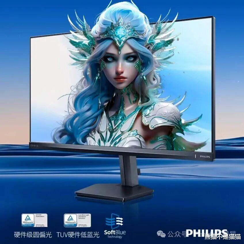 要说主推款,熊猫个人主观首推飞利浦 EV 的 27M2N3500UK,毕竟不管设备如何,护眼绝对是现在年轻人必须重视的问题。作为和京东方联合定制的全球首款硬件圆偏光显示器,单论护眼效果这一点,绝对算得上是第一梯队的存在。