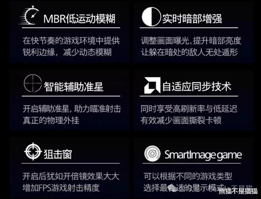 参数上,采用300Hz的高刷2K屏,通知针对游戏玩家,还专门设置有MBR低运动模糊、实时暗部增强、智能准星以及自适应同步等技术加持,提供了更为专业的竞技体验。