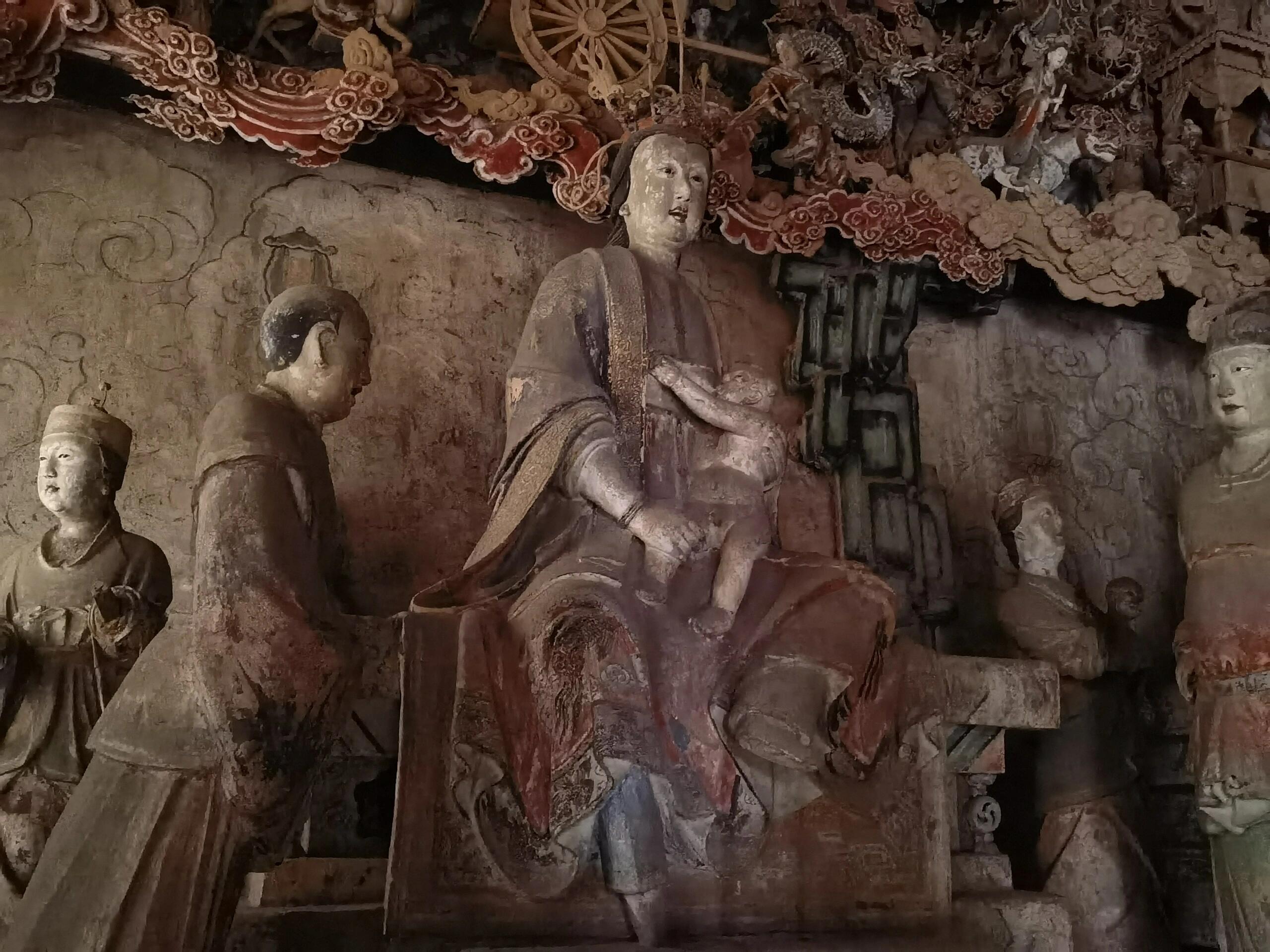 每逢庙会时节,这座沉寂的殿堂便会苏醒。当地百姓恭敬地请出神轿中的圣母替身,抬着它们走过街巷,祈福纳祥。热闹的锣鼓声中,神轿上的金龙似乎也随着队伍的颠簸而游动,殿内的彩塑仿佛也在注视着这场盛大的仪式。这份延续数百年的信仰传统,让冰冷的建筑与雕塑,化作连接古今的情感纽带。
