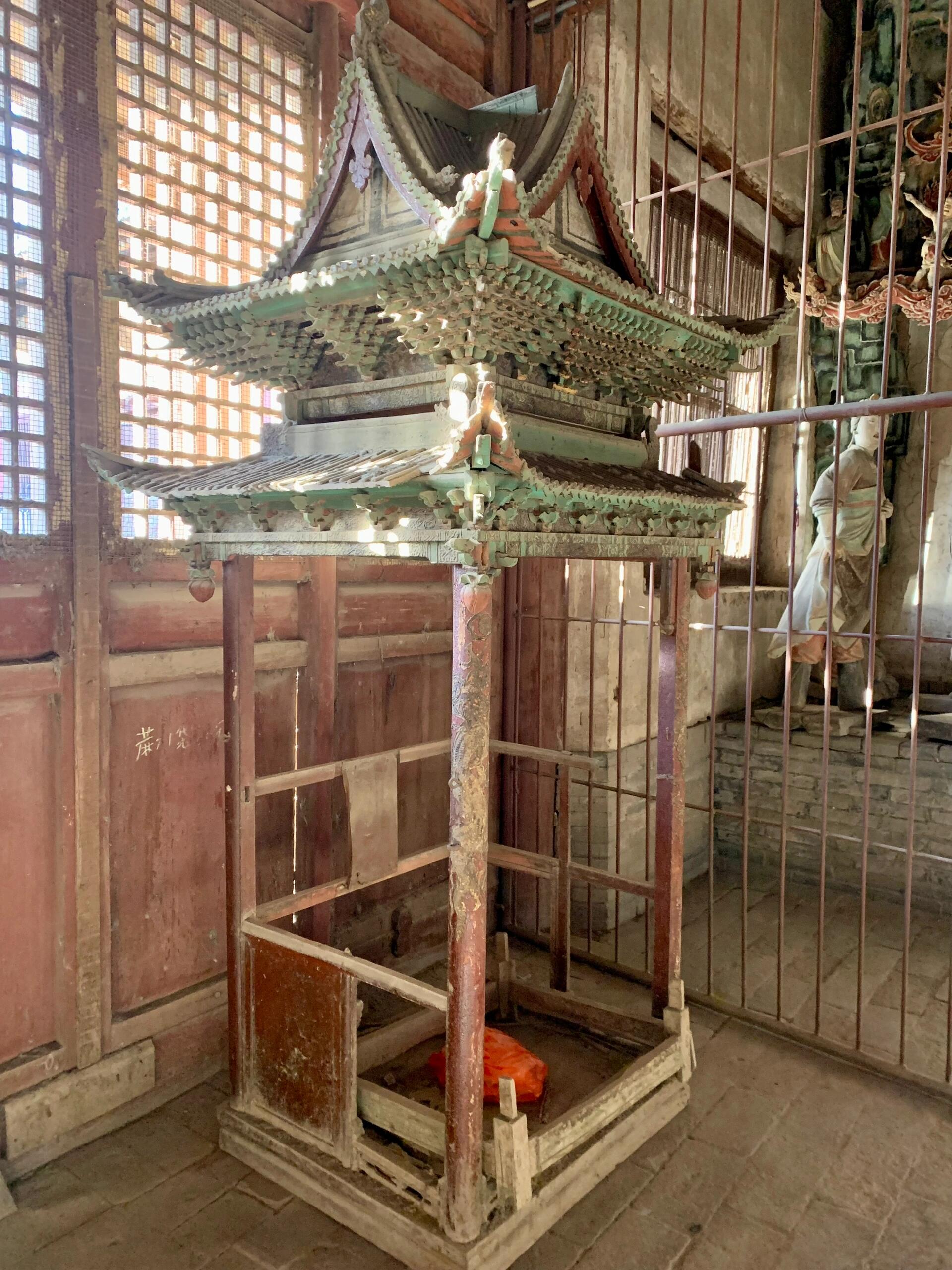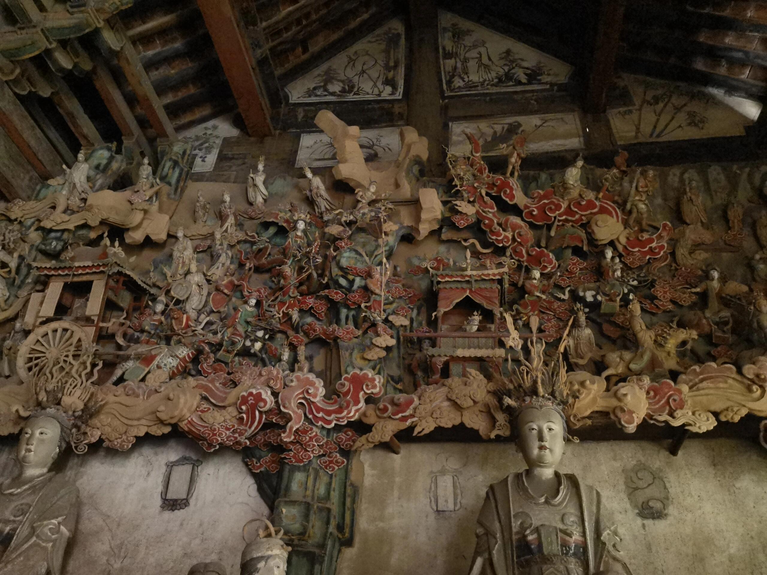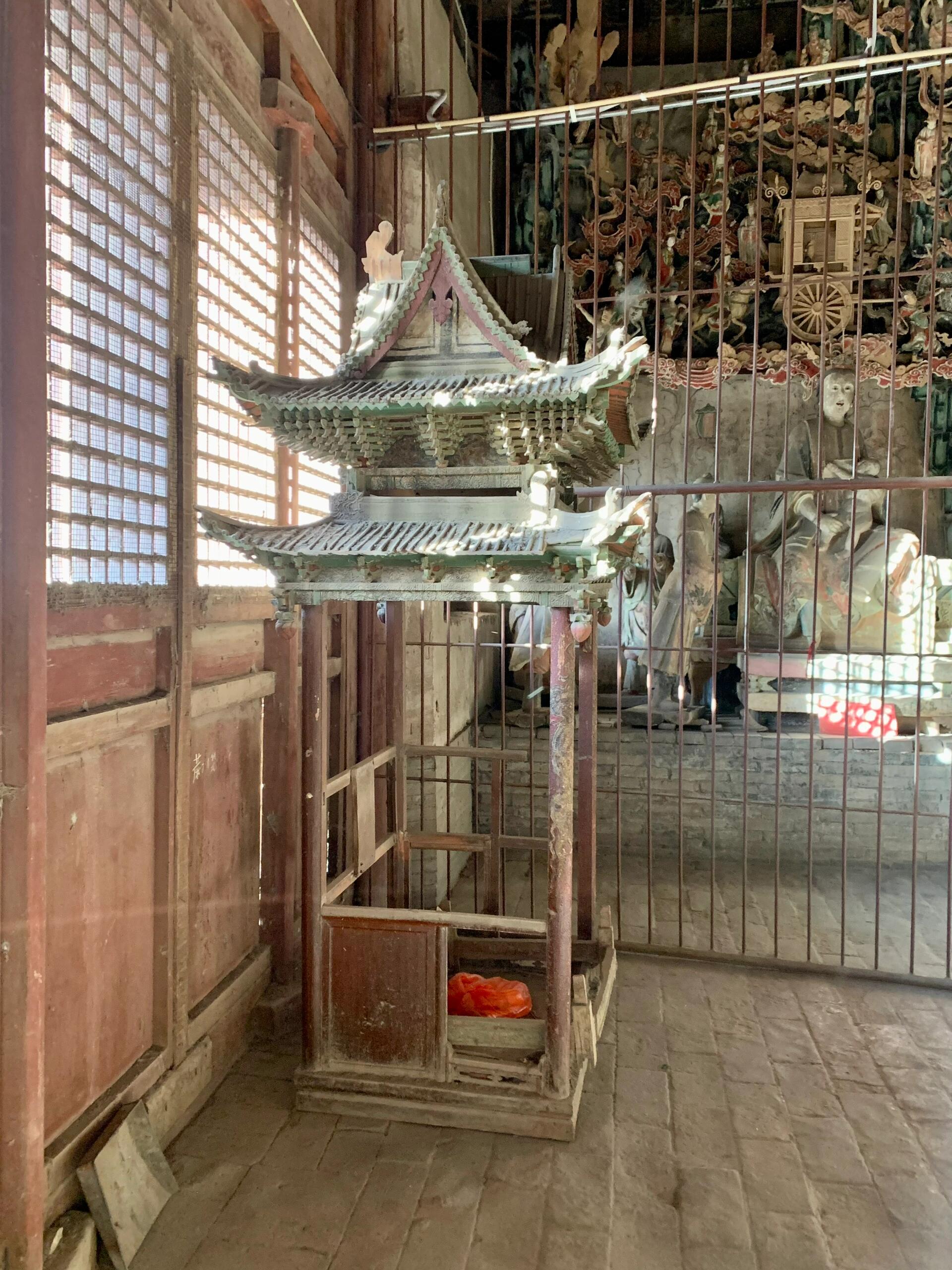 站在殿内环顾四周,彩塑与悬塑的鲜活、木构神轿的精巧,共同编织出独特的空间叙事。阳光透过窗棂洒落,在彩塑表面投下明暗交错的光影,那些神像仿佛被赋予了生命,开始诉说着千百年来的故事。在这里,神仙不再是遥不可及的存在,而是融入百姓生活的守护者;建筑也不只是遮风避雨的场所,而是承载信仰与审美的艺术载体。