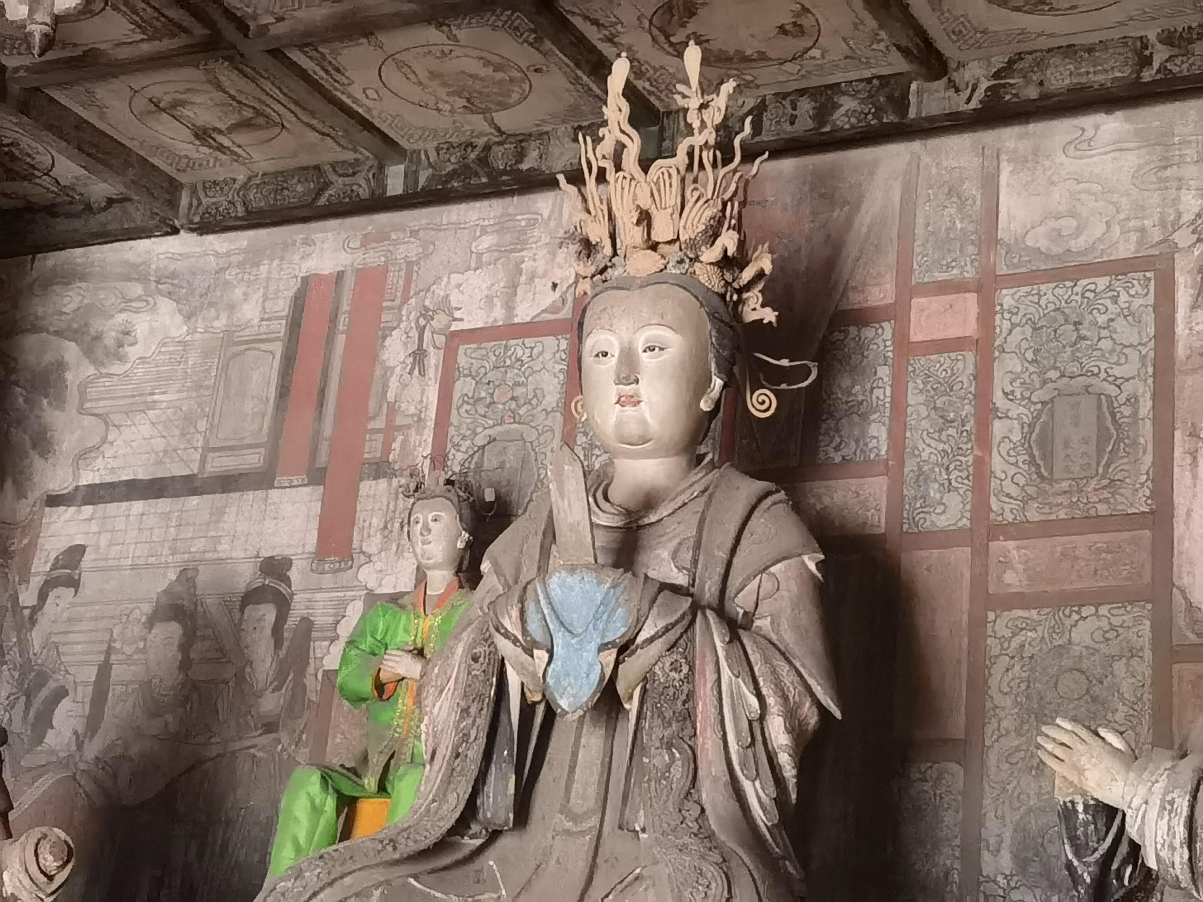 在汾阳西北的黄土地上,太符观后土圣母殿像一本厚重的立体典籍,静立在岁月深处。这座明代万历年间浴火重生的建筑,没有飞檐斗拱的张扬,却用最朴实的砖瓦木石,承载着民间信仰的炽热与工匠技艺的精妙。推开斑驳的殿门,一场跨越时空的视觉盛宴便在眼前徐徐展开。