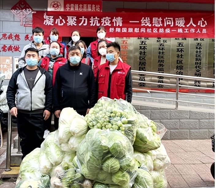 11月4日,河南舒翔国际旅游集团有限公司党支部书记、董事长秦振伟带领公司爱心人士购买新鲜的果蔬等物资走进西工街道办事处五环社区和体育场路社区为坚守在社区一线疫情防控工作,给“志愿者”们加油打气。