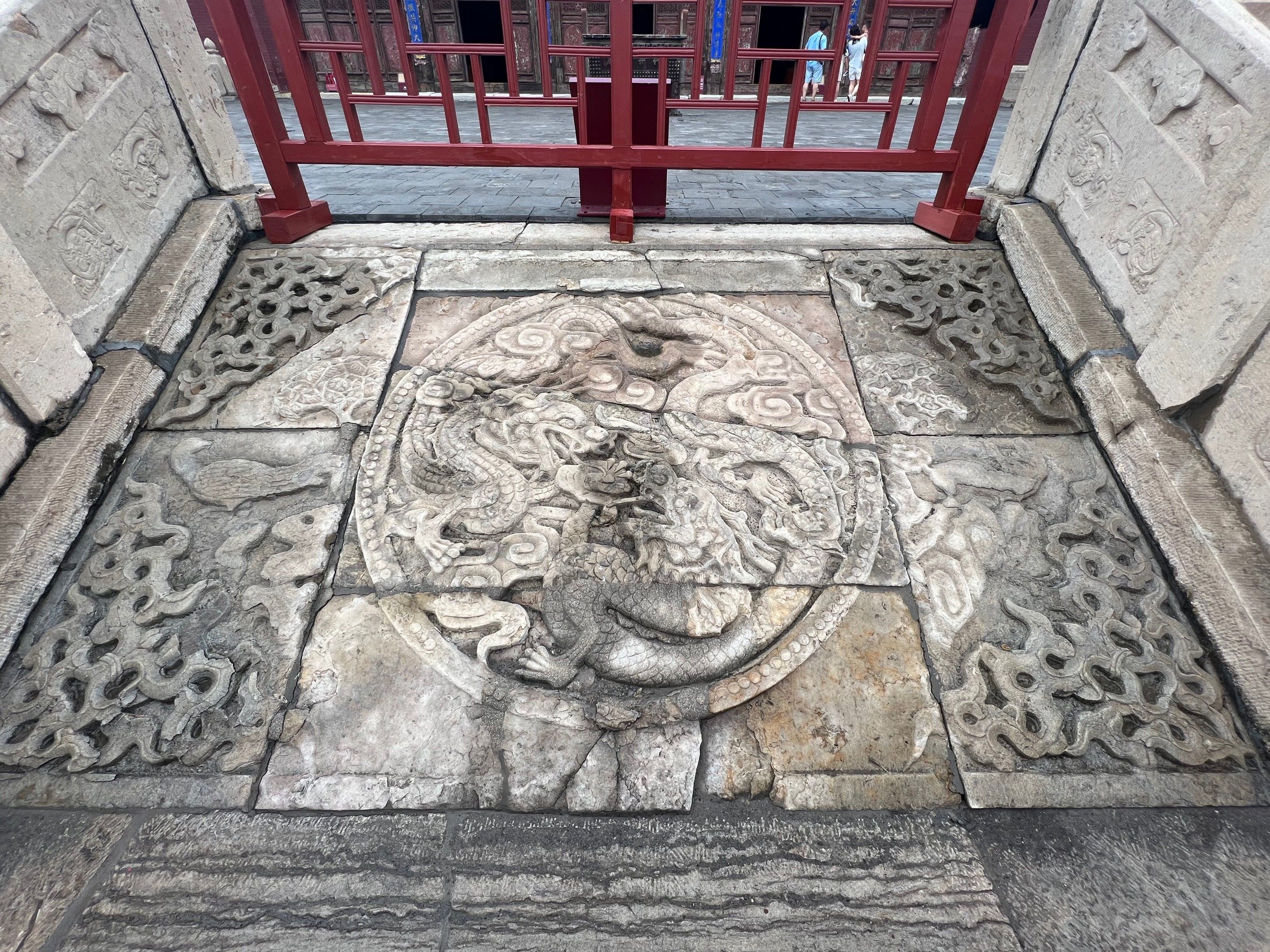 ▶ 二绝:大成殿彩绘——金龙与玺的“儒学密码”殿内供奉孔子及“四配十二哲”塑像,梁枋彩绘为清代宫廷画师所作“金龙和玺”: