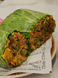 东北特色街头小吃,接地气又好吃,分量超大,饱腹又解馋,性价比绝了。招牌东北大饭包,生菜叶裹着米饭、土豆泥、鸡蛋酱、香菜、小葱,用料超足,咸香入味,一口咬下去超满足;还有东北卷饼,筋道饼皮裹着卤肉、千张、青菜,酱香浓郁,小吃分量大,价格便宜,逛街、赶路的时候来一份,快速填饱肚子,烟火气拉满。