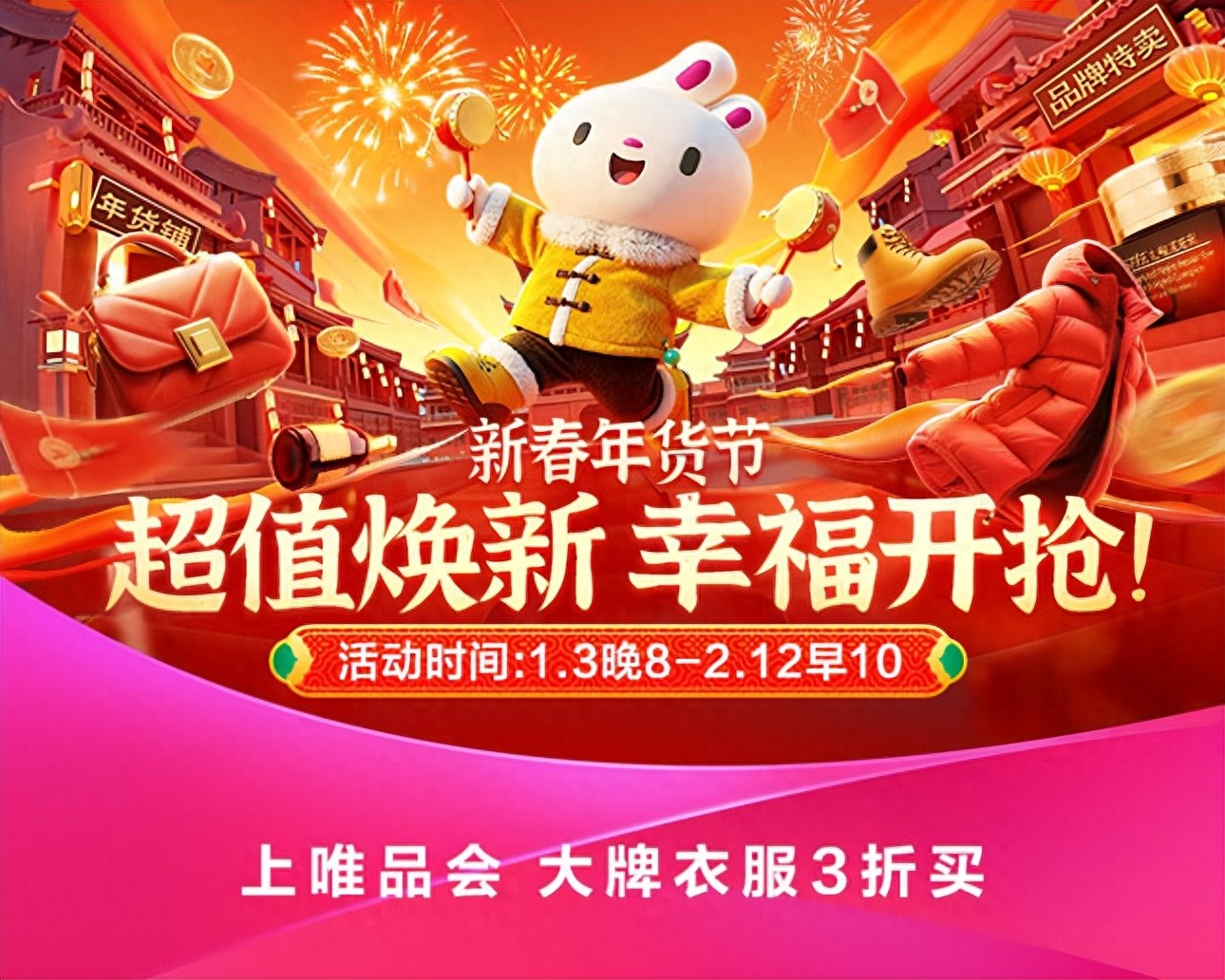 特卖电商唯品会消息,其新春年货节将于1月3日晚8点正式开幕。